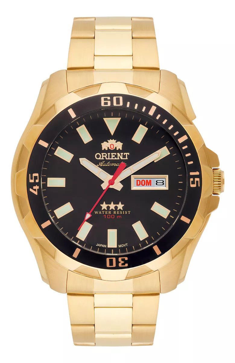 O Relógio Orient Automático Dourado, é perfeito para homens que buscam estilo e sofisticação. Com sua caixa e pulseira e em aço inoxidável dourado e mostrador preto, ele combina perfeitamente com qualquer ocasião.